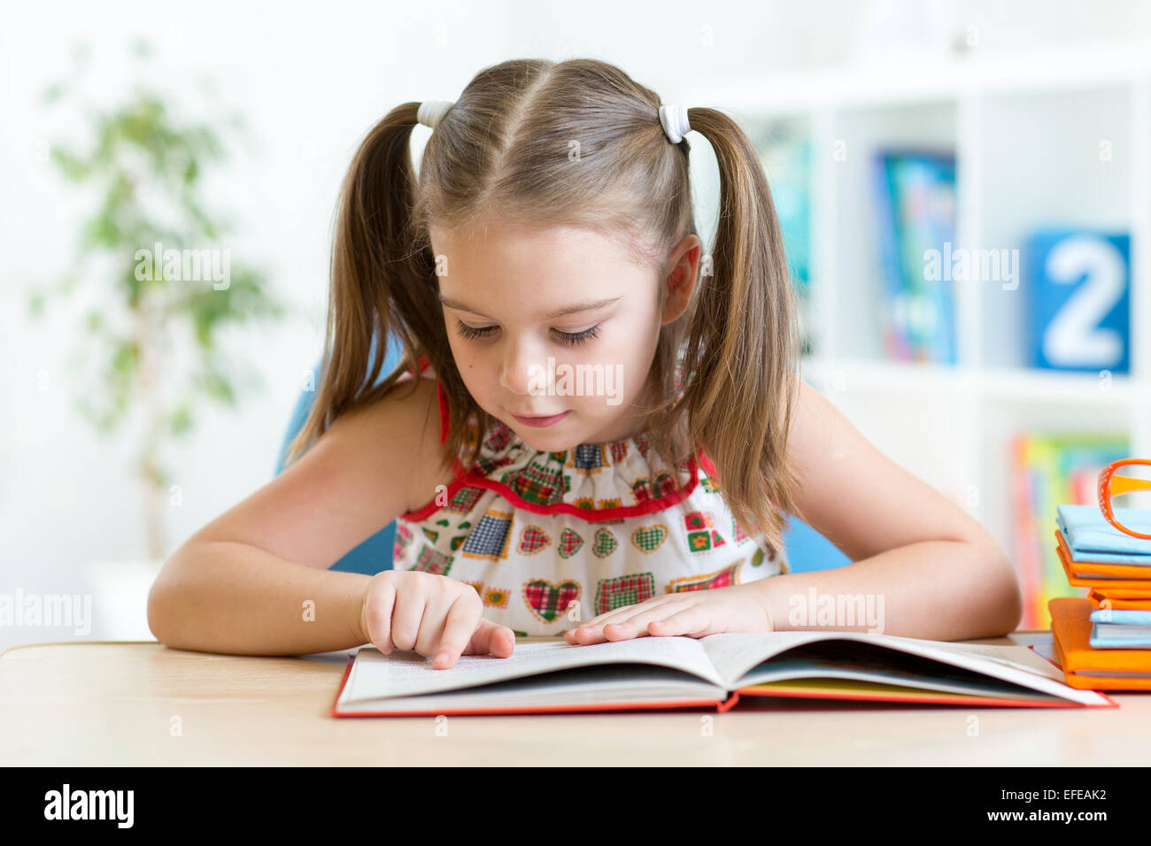 Cute Little Girl Reading Story From Big Book In Nursery Stock Photo Alamy